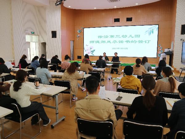 签订教师师德师风“承诺书”,徐花副园长对承诺书内容进行了解读,每位老师仔细阅读,并严肃的在承诺人一栏签上了自己的名字。
