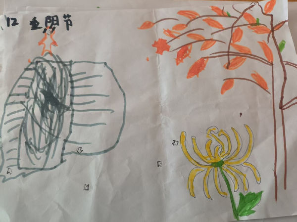 为了让想法落地,孩子们化身 “小小策划师”,把自己选定的活动画了下来,制作成专属的 “重阳任务卡”:有的画上祖孙登高的场景,有的画着捶背的温馨画面,还有的用简单的线条勾勒出和爷爷奶奶共享美食的快乐…… 每一张任务卡都充满童趣,更藏着对长辈最纯粹的爱。