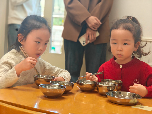 “自己的事情自己做!” 生活环节中,孩子们展现了令人惊喜的自理能力。挂衣服、洗手、分发餐具、自主进餐…… 一系列动作熟练又认真。家长们静静观察着:曾经需要依赖的小宝贝,如今已能独立完成各项生活任务,还会主动帮助同伴。“原来孩子在幼儿园这么能干!” 不少家长感慨道,生活环节的展示让他们看到了孩子独立、自信的一面。