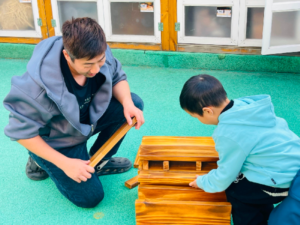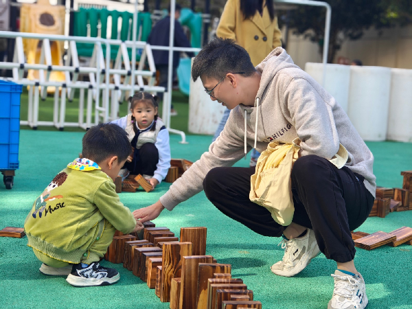 游戏是孩子们的天性,户外游戏时间,孩子们在建构中创意搭建,在走秀中自信展现,在沙水中探索感知,在于大自然的互动中体验…… 家长们也参与其中,和孩子一起游戏、互动,欢声笑语充满了整个校园。游戏中,孩子们学会了分享、合作、解决问题,也收获了纯真的友谊,家长们也在陪伴中重温了童年的快乐。