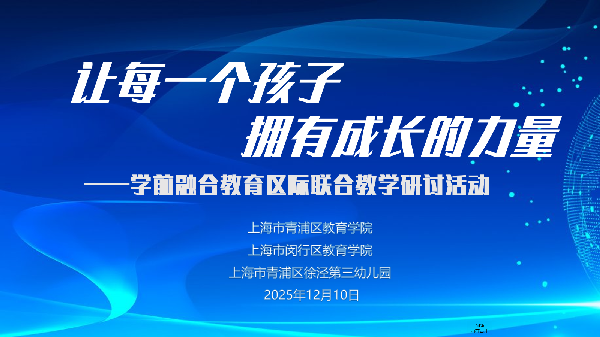 为深化学前融合教育实践,搭建区域间交流共进的桥梁,促进特殊需要幼儿健康成长,2025年12月10日上午,学前融合教育区际联合教学研讨活动在青浦区徐泾第三幼儿园顺利举行。