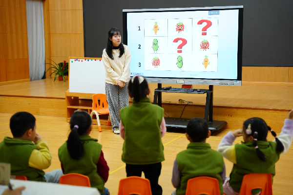 在融合教育课堂教学展示中,马老师携手资源教师沈老师,带来了大班集体活动《蔬菜大冒险》。马老师以趣味化、生活化的教学方式,引导幼儿探索蔬菜排序的奥秘,兼顾每位幼儿的学习节奏与发展需求;沈老师全程密切关注特殊需要幼儿的课堂反应,及时为其提供个性化支持。